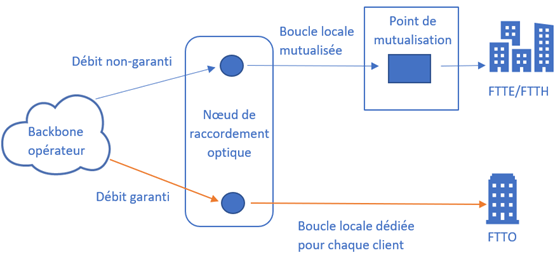 La particularité première de la FTTO est qu’elle se présente sous la forme d’une connexion dédiée et directe, au backbone de l’opérateur.